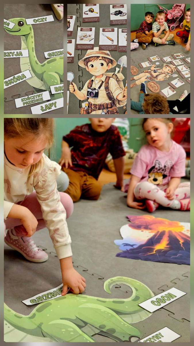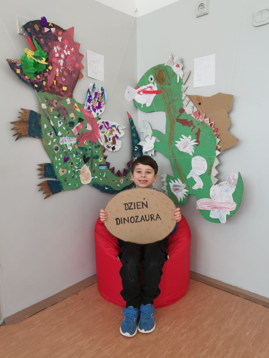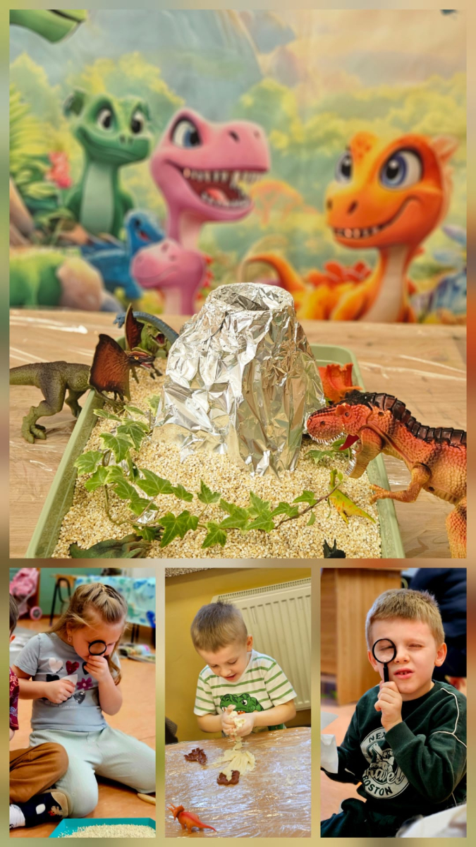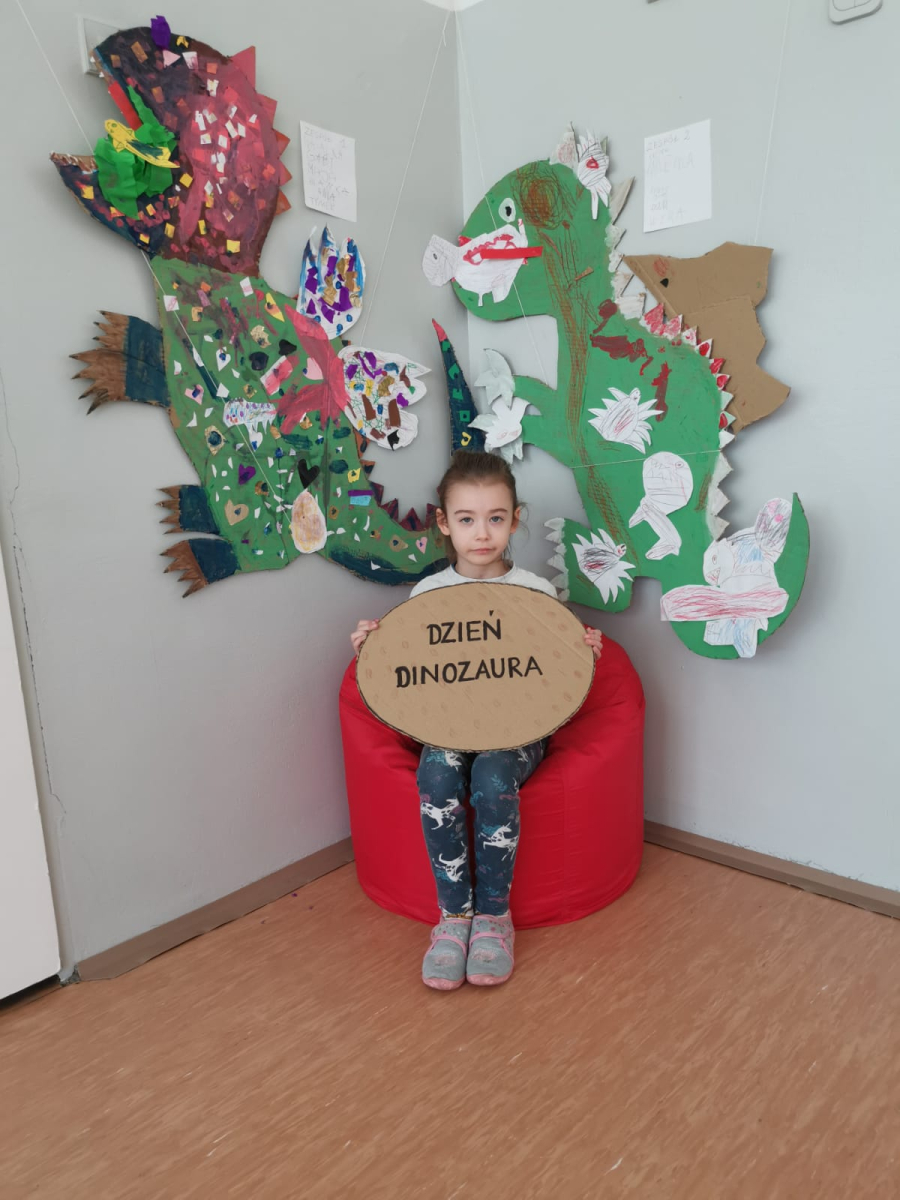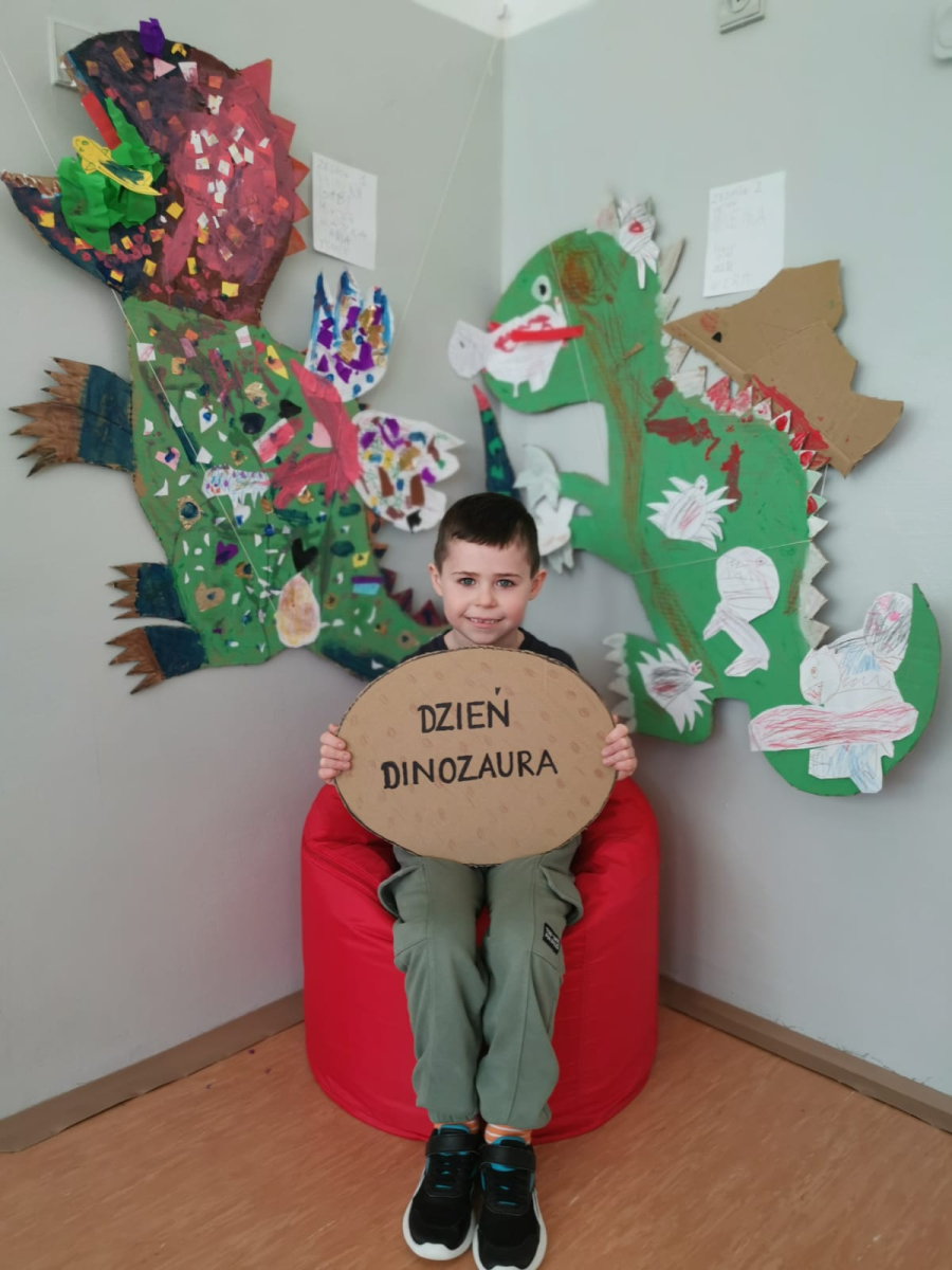 Dzień Dinozaura to jedno z najbardziej wyczekiwanych świąt w przedszkolu. Obchodzony jest zazwyczaj 26 lutego i stanowi doskonałą okazję do poznawania prehistorycznego świata oraz rozwijania dziecięcej ciekawości. Tego dnia sale przedszkolne zamieniły się w prawdziwą krainę dinozaurów. Dzieci przyniosły swoje figurki dinozaurów, które z wielką ciekawością oglądały. Podczas zajęć przedszkolaki poznały ciekawostki o życiu dinozaurów, brały udział w zabawach ruchowych, uczestniczyły w "wykopaliskach", szukając ukrytych w piasku szkieletów dinozaurów oraz oglądały wybuch wulkanu. Dzieci dowiedziały się trochę o pracy paleontologa oraz wykonały piękne prace plastyczne. Dzień Dinozaura to nie tylko zabawa, ale również nauka poprzez doświadczenie. Taki dzień na długo pozostaje w pamięci przedszkolaków oraz sprawia im wiele radości.