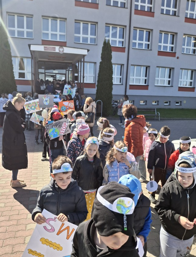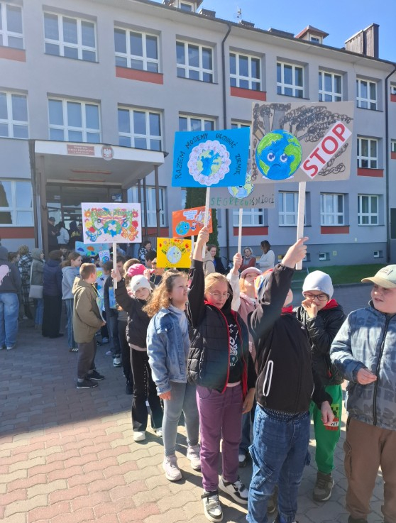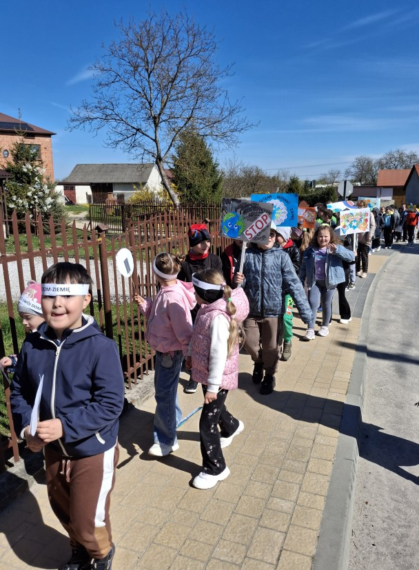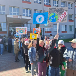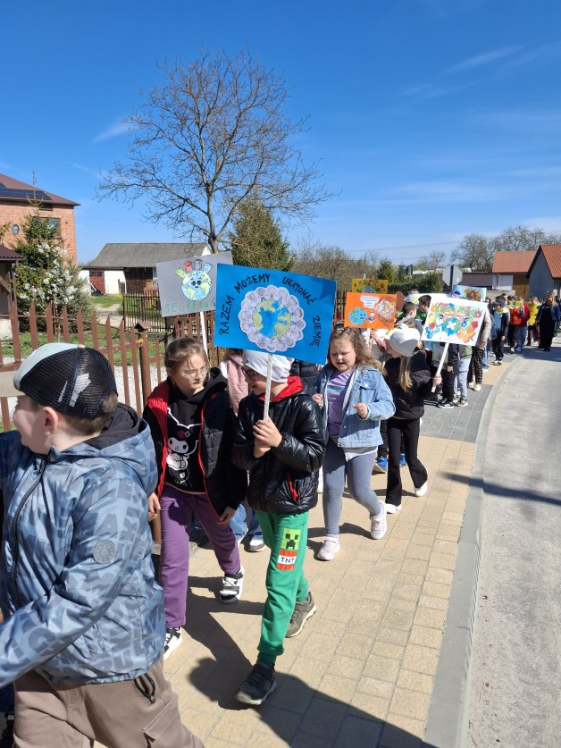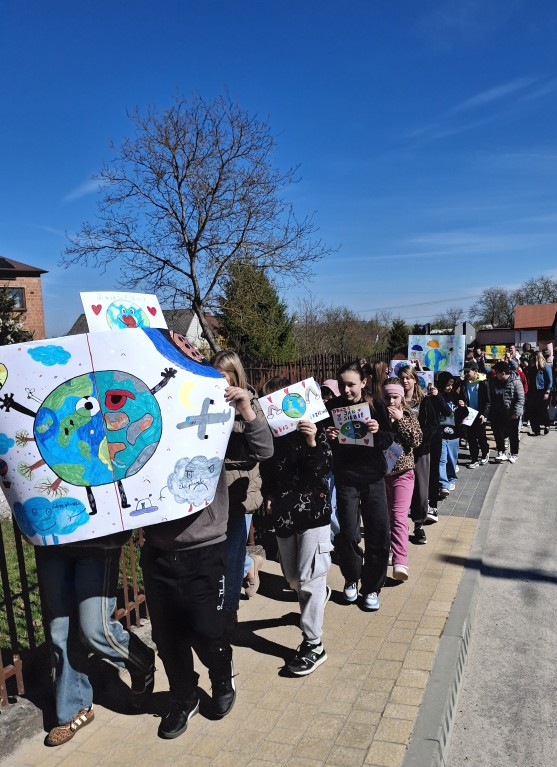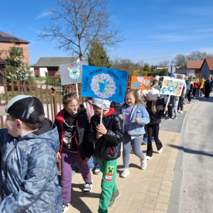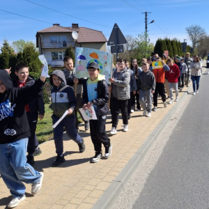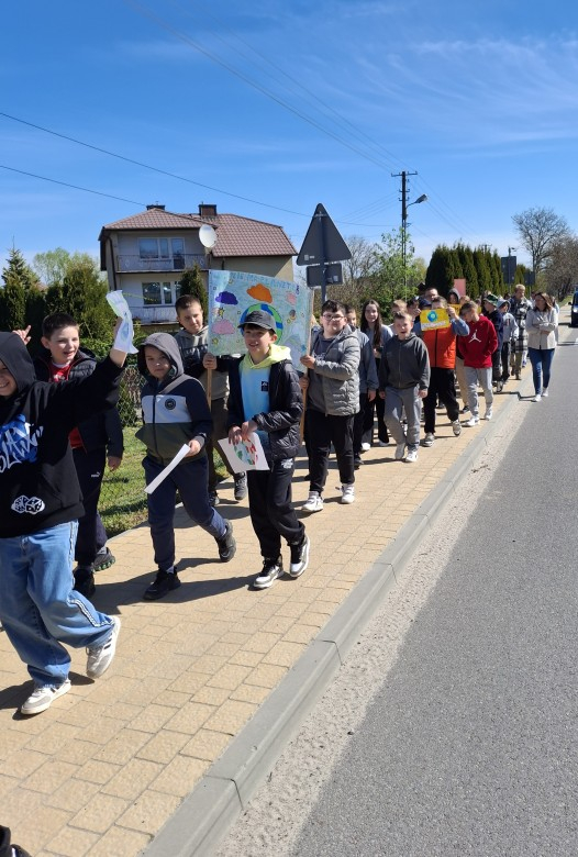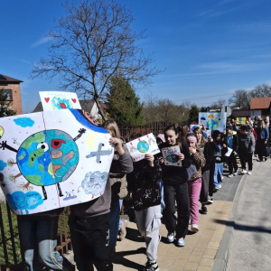 Uczniowie, pod opieką nauczycieli, przygotowali wcześniej kolorowe transparenty z hasłami zachęcającymi do dbania o środowisko naturalne, ograniczania ilości odpadów oraz troski o naszą planetę. Następnie wyruszyli na spacer, prezentując swoje prace i dzieląc się ważnym przekazem z mieszkańcami.
