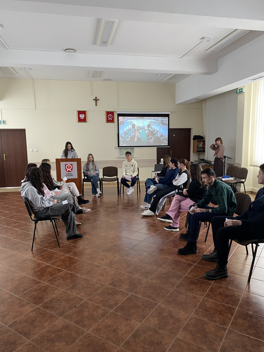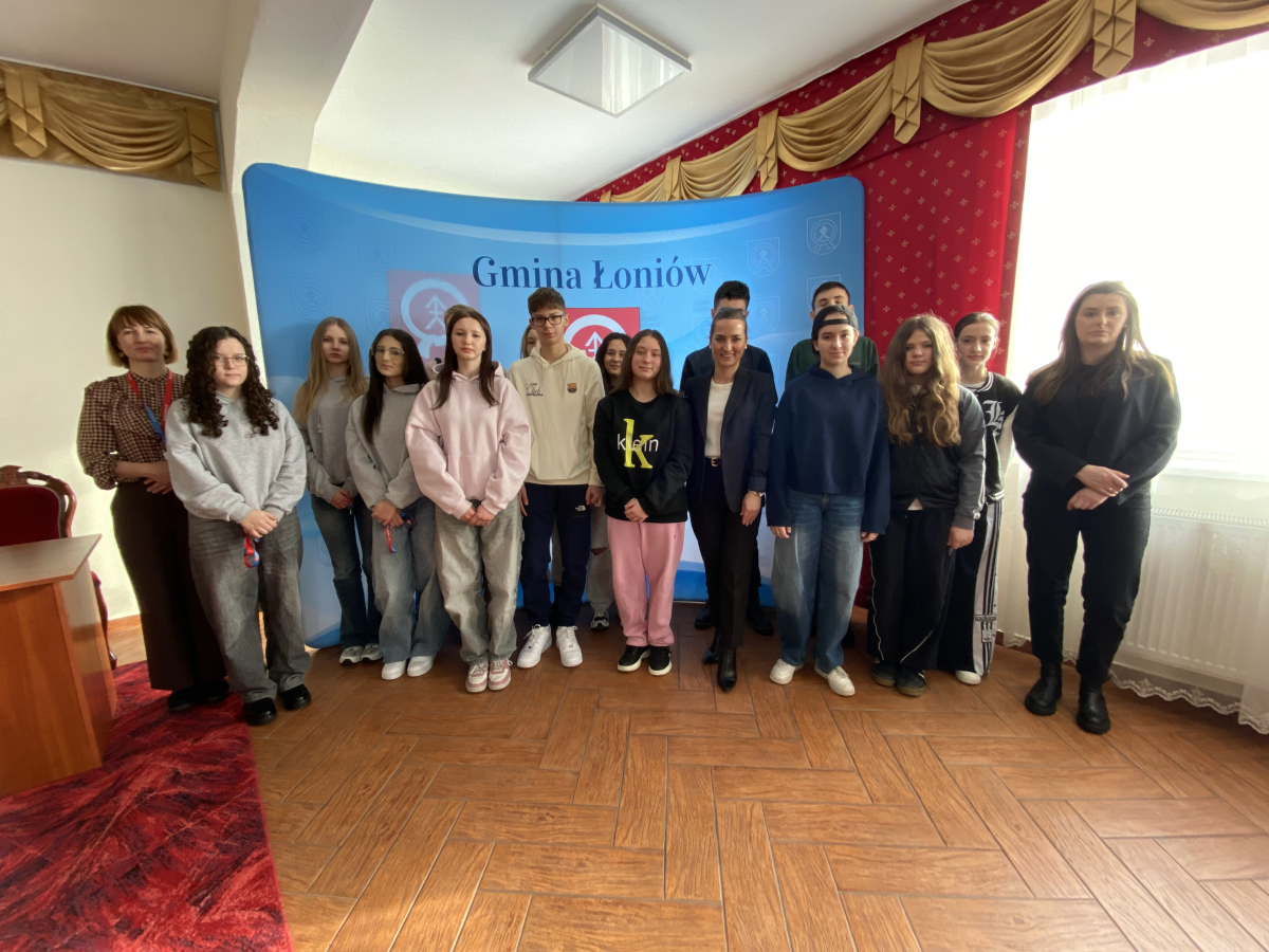 Podczas spotkania, Pani Wójt opowiedziała o swojej pracy, zapoznała uczniów ze strukturami i zadaniami samorządu terytorialnego, a młodzież dowiedziała się, jak funkcjonuje gmina na co dzień. Pracownicy urzędu w przystępny sposób przybliżyli zagadnienia związane ze swoją pracą i co można załatwić w poszczególnych referatach Nie zabrakło również rozmów o prawach i obowiązkach mieszkańców oraz możliwościach aktywnego udziału młodych ludzi w życiu lokalnej społeczności. Przewodniczący Rady Gminy opowiedział młodzieży o swoich obowiązkach wynikających z funkcji przewodniczącego, czym zajmuje się Rada Gminy i w jaki sposób przyjmuje uchwały. Część warsztatowa pozwoliła uczniom sprawdzić zdobytą wiedzę w praktyce – uczestnicy pracowali w grupach, analizowali przykładowe problemy lokalne i proponowali własne rozwiązania. Zajęcia były okazją do zadawania pytań oraz bezpośredniego kontaktu z samorządem, co spotkało się z dużym zainteresowaniem młodzieży. Wyjazd do Łoniowa był cenną lekcją obywatelską, która pomogła uczniom lepiej zrozumieć rolę samorządu oraz znaczenie aktywności społecznej.