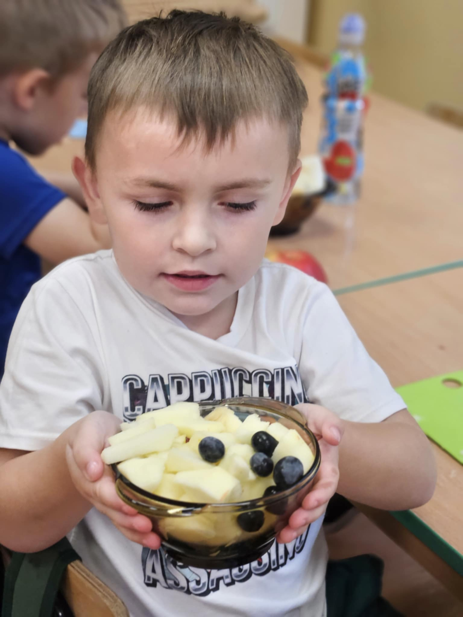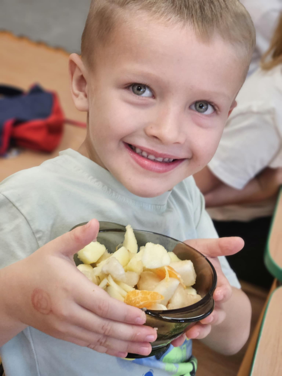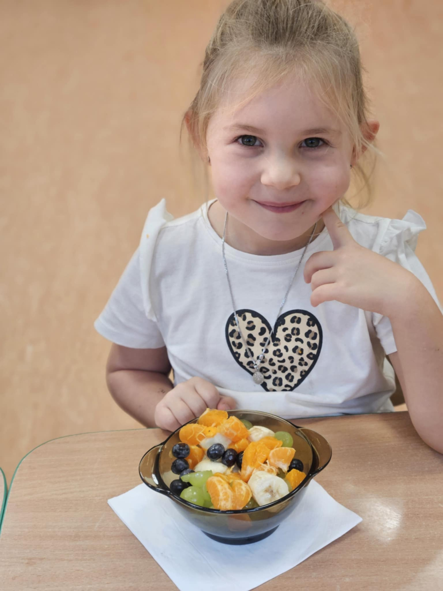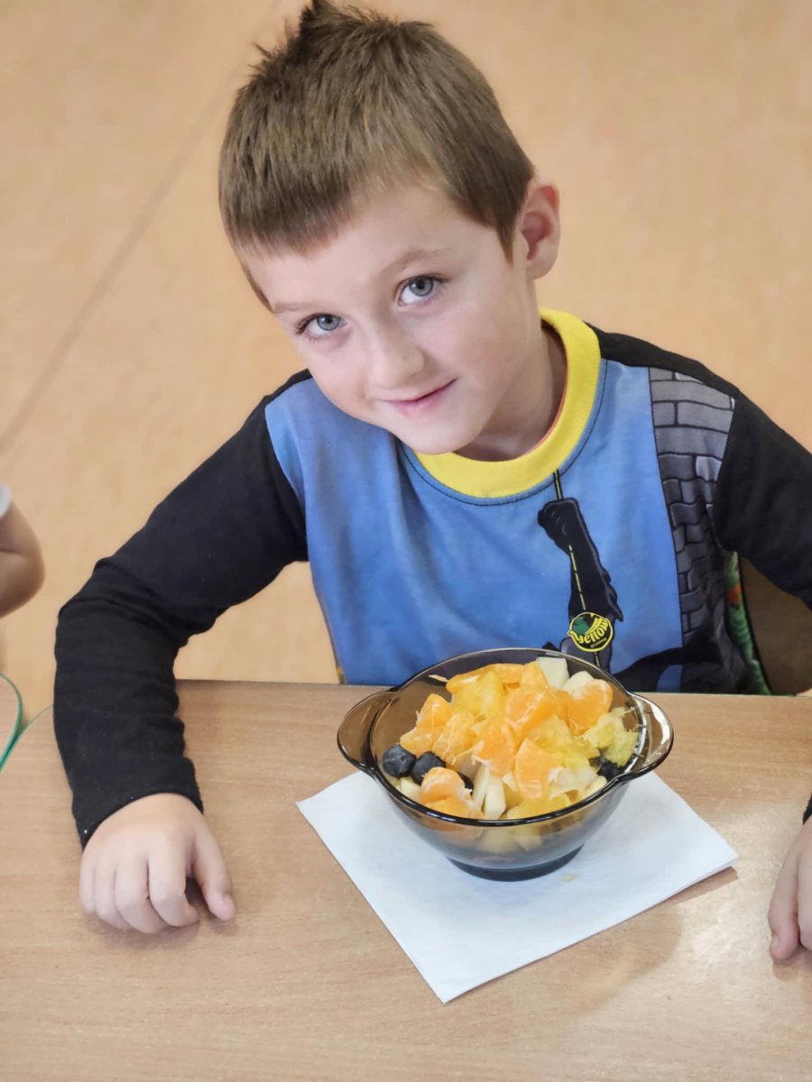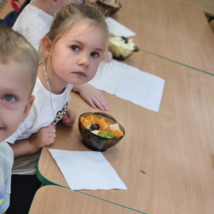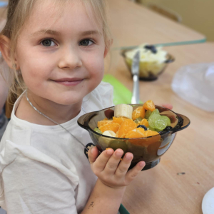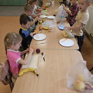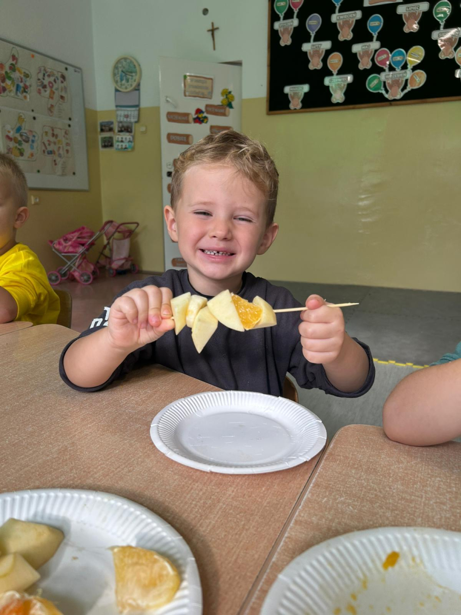 W październiku obchodzony jest Światowy Dzień Owoców i Warzyw. To święto, którego celem jest przypomnienie o tym, jak ważnym elementem diety są owoce i warzywa bogate w minerały, witaminy i błonnik. W związku z tym w naszym przedszkolu w ubiegły piątek przeprowadziliśmy zajęcia promujące zdrowe nawyki żywieniowe, które należy kształtować już od najmłodszych lat. Dzieci porównywały wygląd, kolor, smaki i kształty owoców. Wspomniane święto było okazją do tworzenia owocowych szaszłyków i kolorowych sałatek. Było smacznie, zdrowo i... witaminowo. Od teraz każdy przedszkolak wie, co powinien jeść aby być zdrowym.