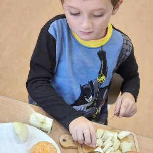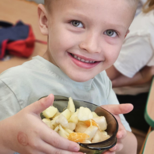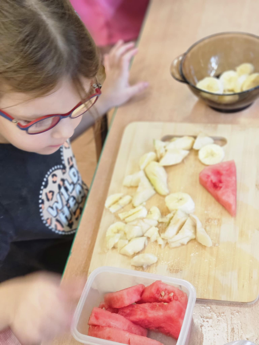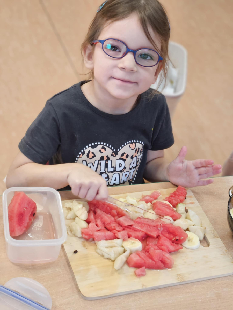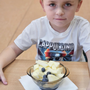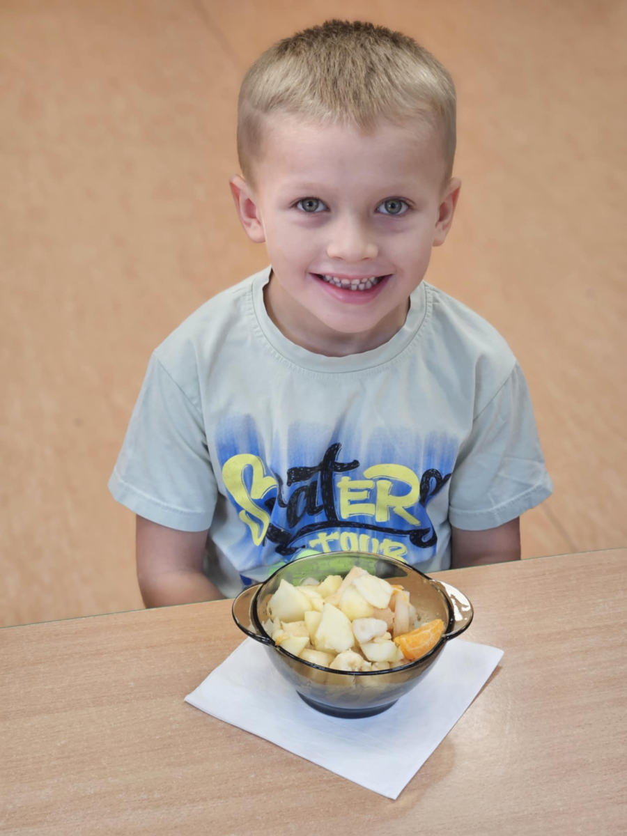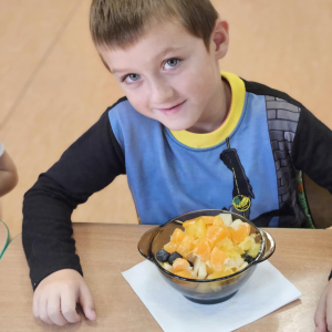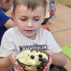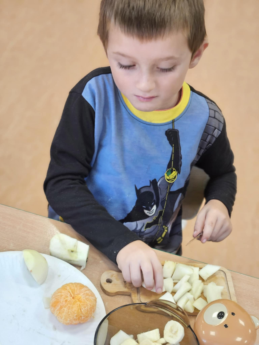 W październiku obchodzony jest Światowy Dzień Owoców i Warzyw. To święto, którego celem jest przypomnienie o tym, jak ważnym elementem diety są owoce i warzywa bogate w minerały, witaminy i błonnik. W związku z tym w naszym przedszkolu w ubiegły piątek przeprowadziliśmy zajęcia promujące zdrowe nawyki żywieniowe, które należy kształtować już od najmłodszych lat. Dzieci porównywały wygląd, kolor, smaki i kształty owoców. Wspomniane święto było okazją do tworzenia owocowych szaszłyków i kolorowych sałatek. Było smacznie, zdrowo i... witaminowo. Od teraz każdy przedszkolak wie, co powinien jeść aby być zdrowym.