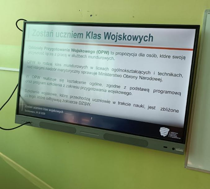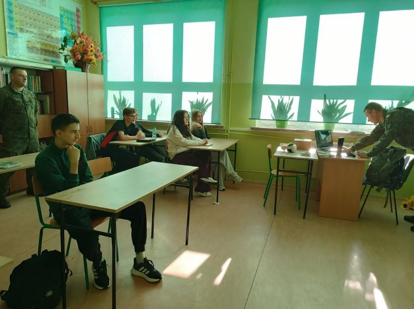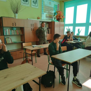 7 listopada uczniowie klasy ósmej uczestniczyli w spotkaniu z przedstawicielami Wojskowego Centrum Rekrutacji w Sandomierzu, poświęconego promocji służby wojskowej.