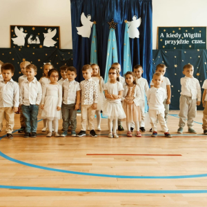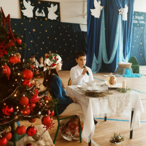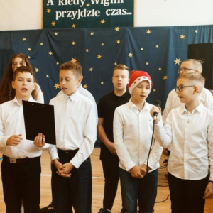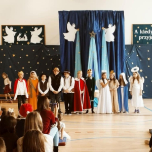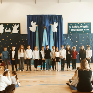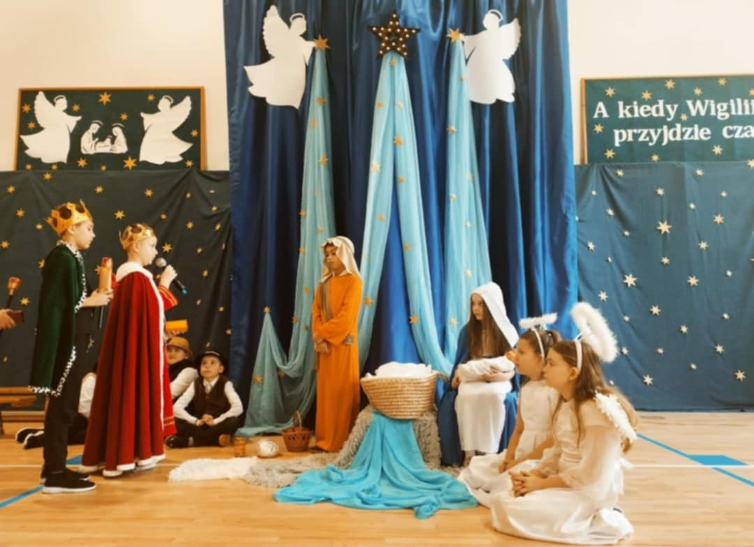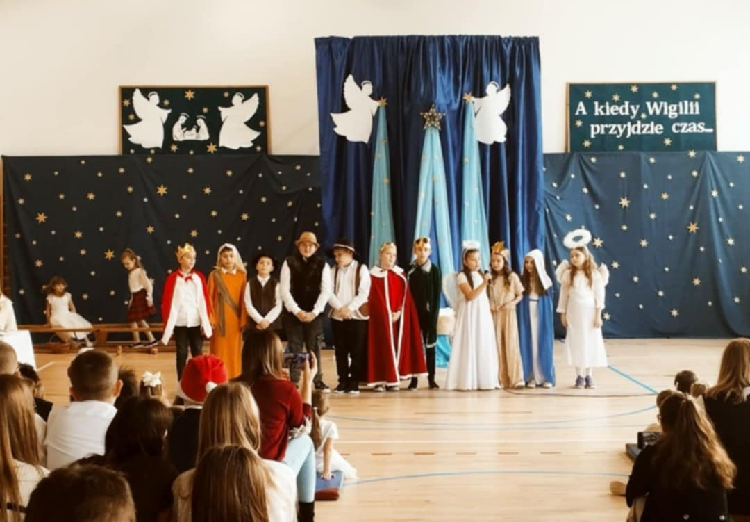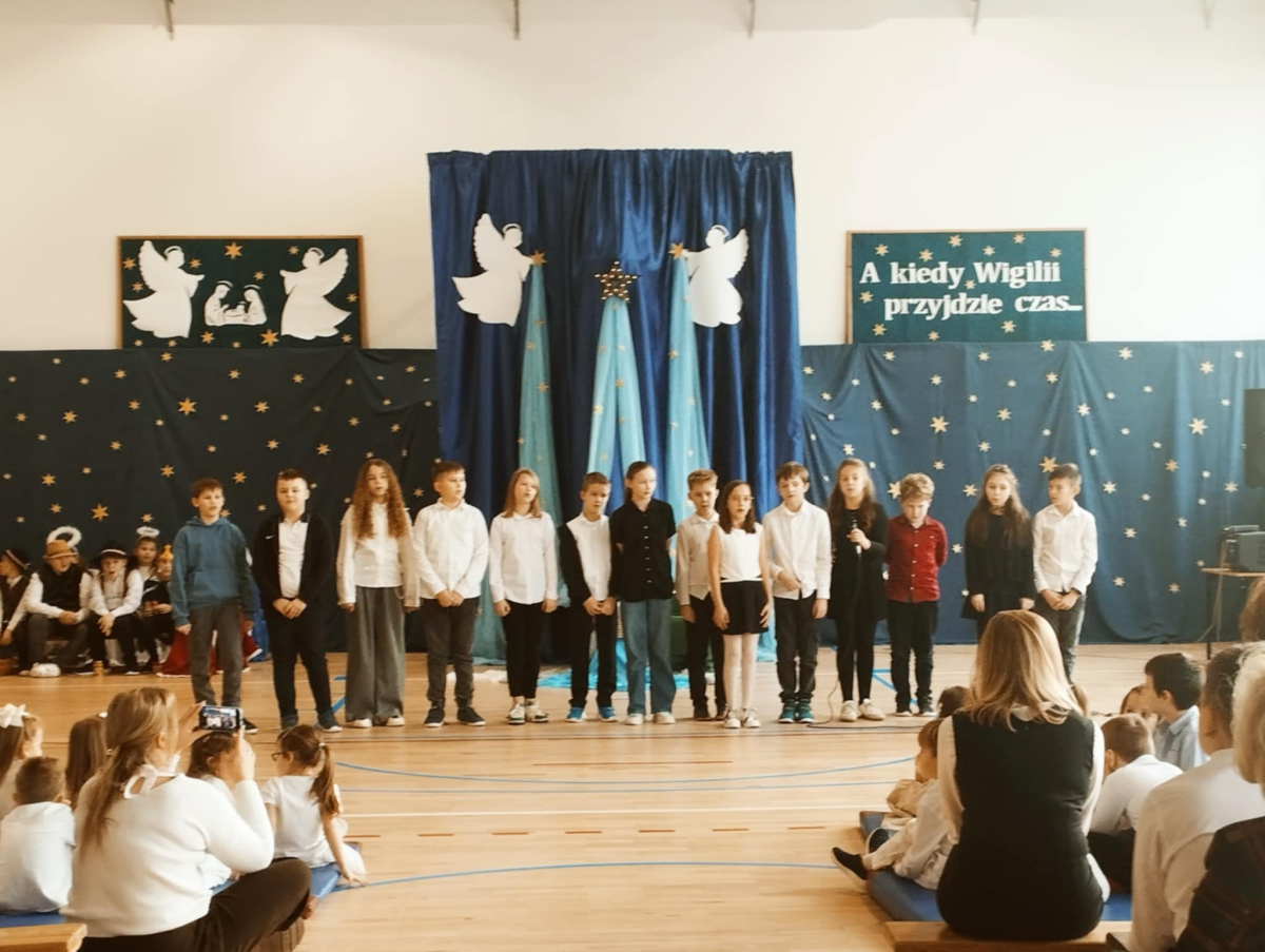 W sali gimnastycznej rozbrzmiewały kolędy odbył się szkolny przegląd kolęd, w którym wzięły udział wszystkie klasy oraz oddziały przedszkolne. Młodsi i starsi uczniowie zaprezentowali tradycyjne i nowoczesne aranżacje, a publiczność nagradzała występy entuzjastycznymi brawami. Było radośnie, wzruszająco i bardzo świątecznie.