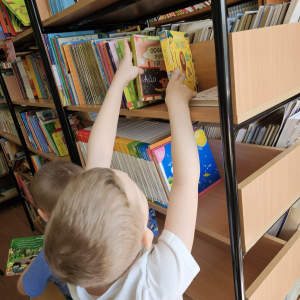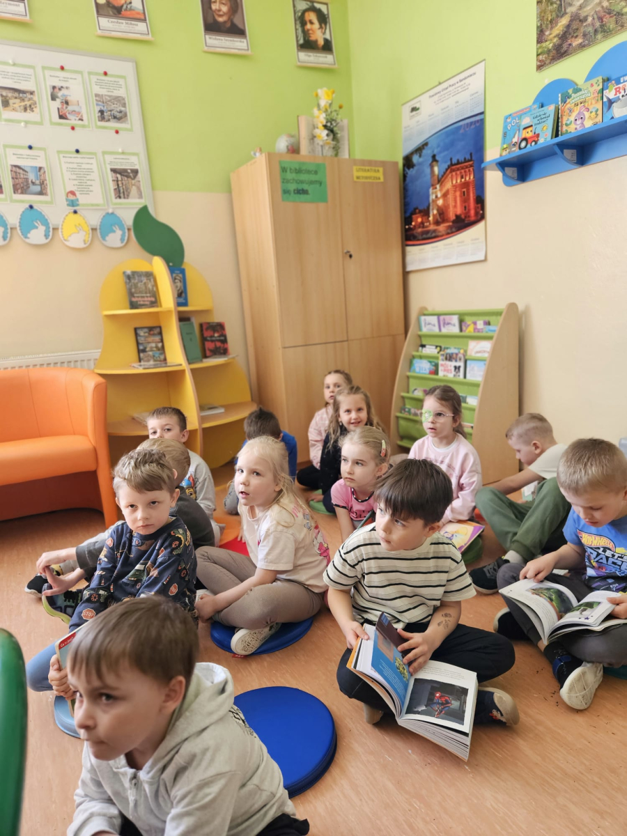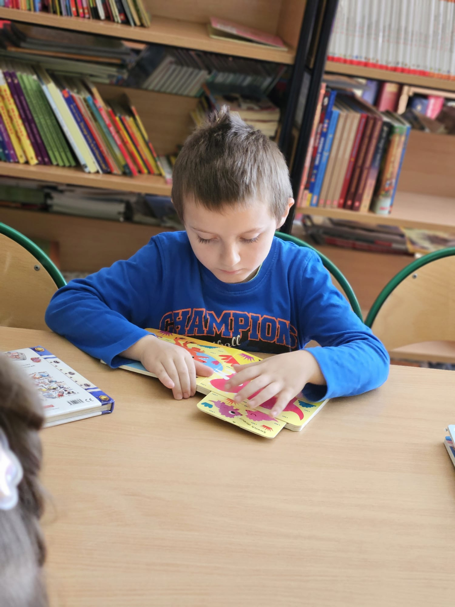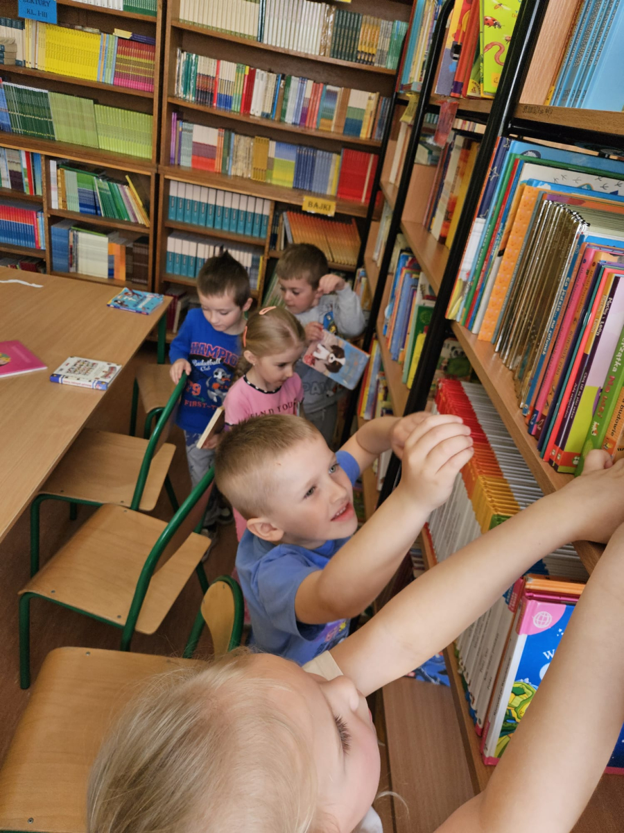 Podczas zajęć w bibliotece dzieci: dowiedziały się, jak należy zachowywać się w bibliotece oraz dlaczego warto dbać o książki; przyniosły swoje ulubione książki i z dumą opowiadały o ich treści kolegom i koleżankom; miały okazję obejrzeć różnorodne książki dostępne w szkolnej bibliotece oraz mogły założyć własne karty biblioteczne i poczuć się jak prawdziwi czytelnicy.