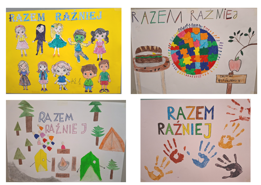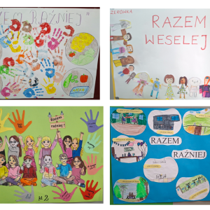 Ważnym punktem obchodów było także wykonanie plakatów pod hasłem „RAZEM RAŹNIEJ”. Uczniowie wykazali się dużą kreatywnością — na pracach pojawiły się symbole przyjaźni, pomocy i wsparcia, a także hasła zachęcające do rozmowy i bycia dla siebie dobrym. Gotowe plakaty ozdobiły szkolne korytarze, przypominając wszystkim, że nikt nie musi pozostawać sam ze swoimi problemami.