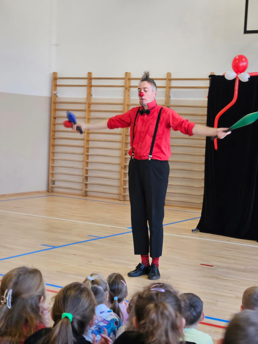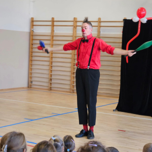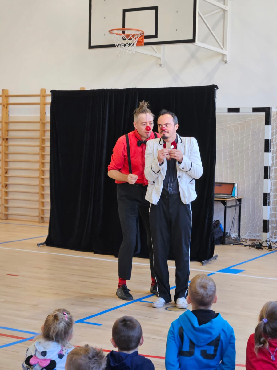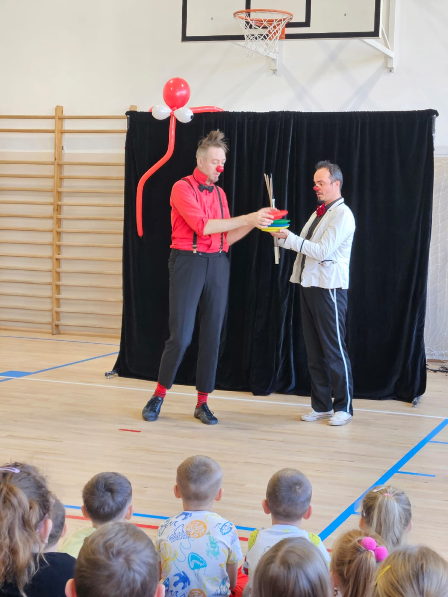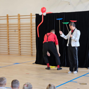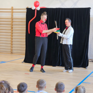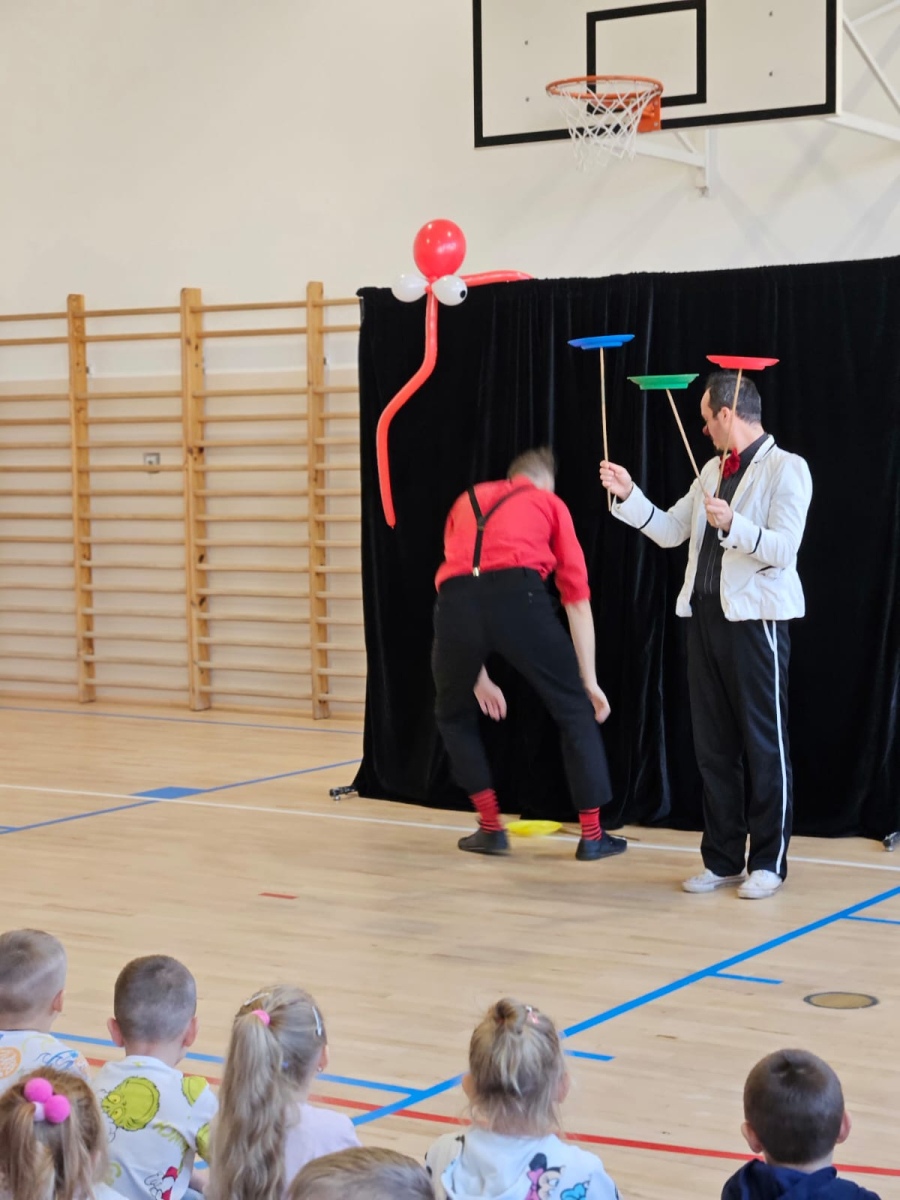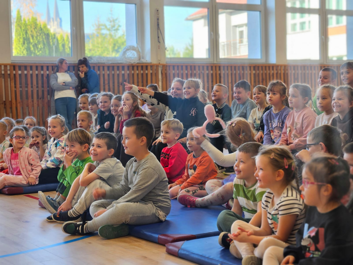 Dnia 5 listopada do naszego przedszkola zawitał „Teatr na Walizkach”, który zaprezentował wspaniały spektakl „Big smile”. Spotkanie odbyło się w ramach projektu Przedszkolne Inkubatory Świętokrzyskiej Dwujęzyczności, który realizujemy w naszej placówce. Widowisko to było pełne humoru, wesołych scenek, podczas którego dzieci utrwalały proste słowa i zwroty w j. angielskim (hello, good morning, colors, animals, thank you, goodbye). Na scenie pojawiła się żonglerka, klaunada, pantomima, taniec i język angielski, a przede wszystkim uśmiech na twarzy każdego przedszkolaka. Artyści w zabawny sposób angażowali publiczność, zachęcając dzieci do wspólnego śpiewania i powtarzania słówek.