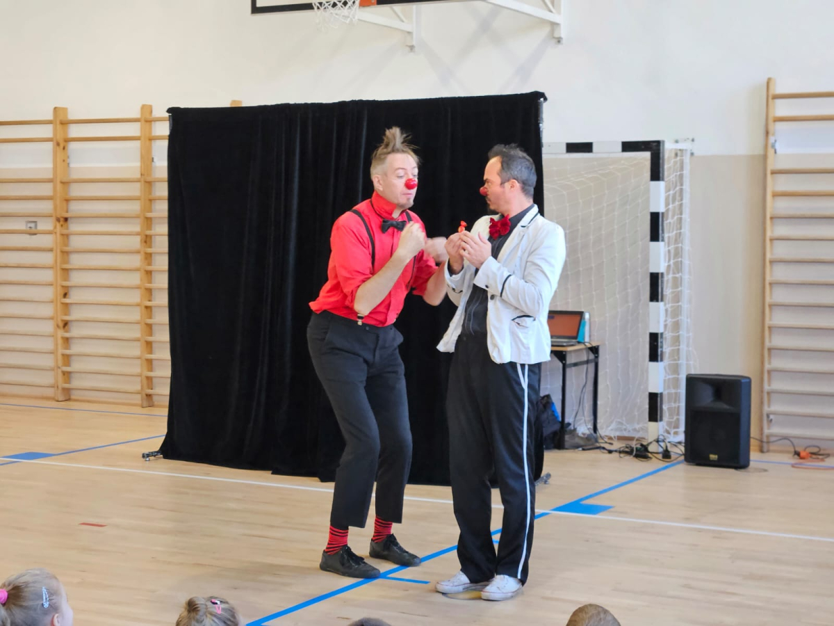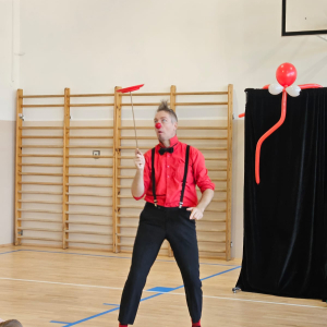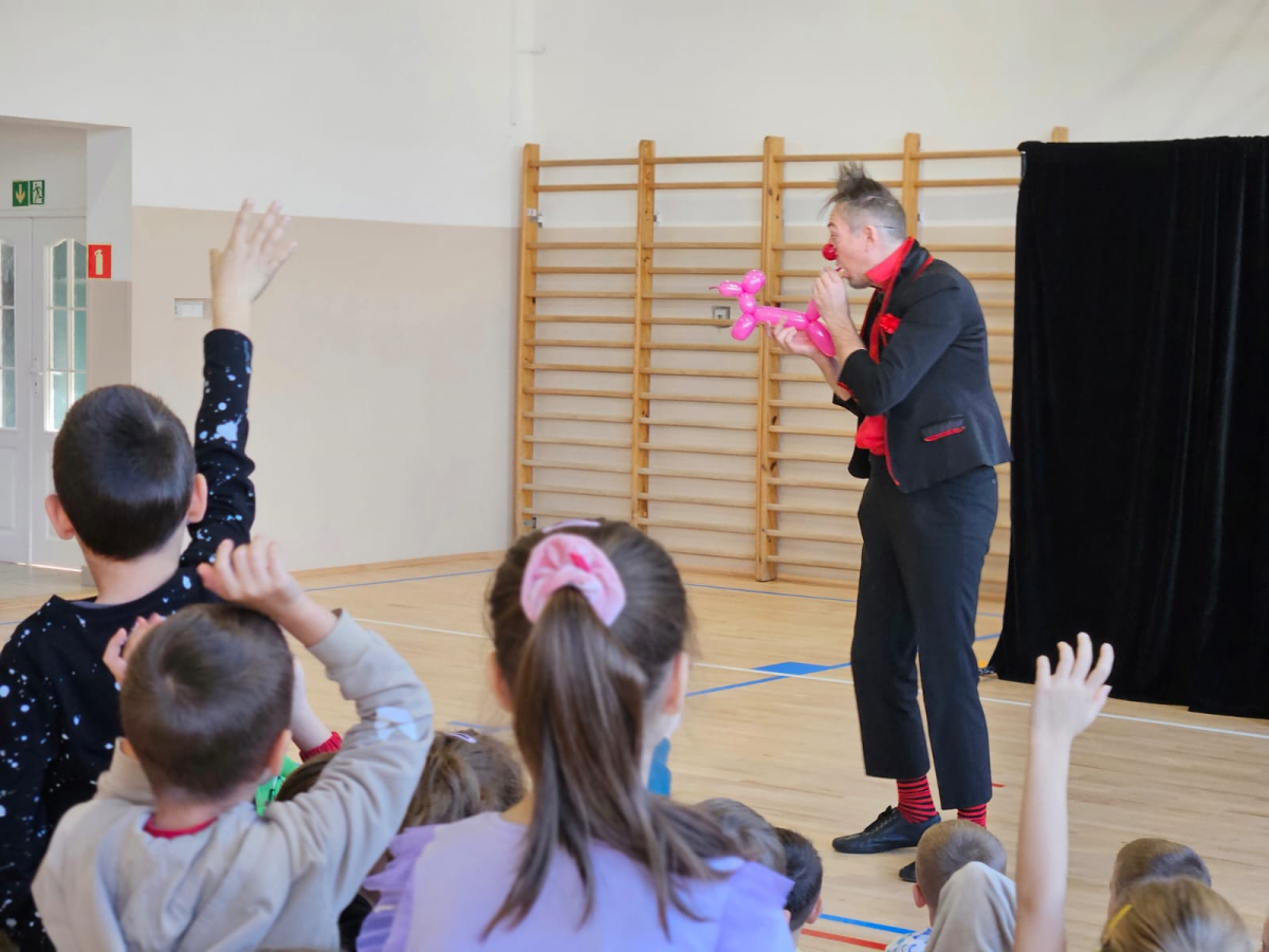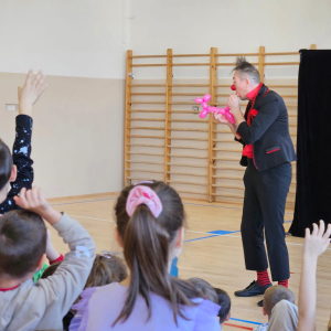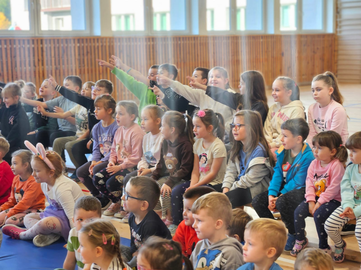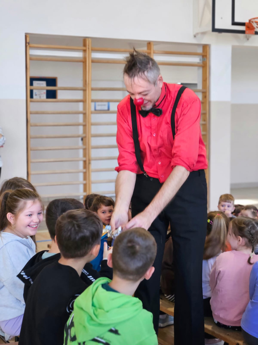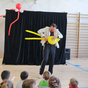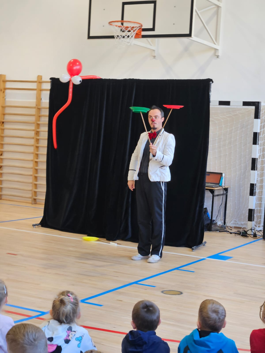 Dnia 5 listopada do naszego przedszkola zawitał „Teatr na Walizkach”, który zaprezentował wspaniały spektakl „Big smile”. Spotkanie odbyło się w ramach projektu Przedszkolne Inkubatory Świętokrzyskiej Dwujęzyczności, który realizujemy w naszej placówce. Widowisko to było pełne humoru, wesołych scenek, podczas którego dzieci utrwalały proste słowa i zwroty w j. angielskim (hello, good morning, colors, animals, thank you, goodbye). Na scenie pojawiła się żonglerka, klaunada, pantomima, taniec i język angielski, a przede wszystkim uśmiech na twarzy każdego przedszkolaka. Artyści w zabawny sposób angażowali publiczność, zachęcając dzieci do wspólnego śpiewania i powtarzania słówek.