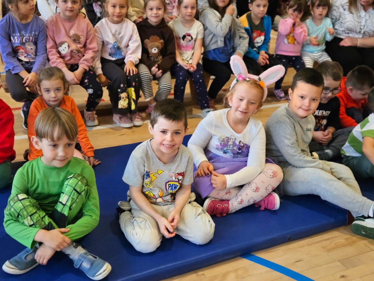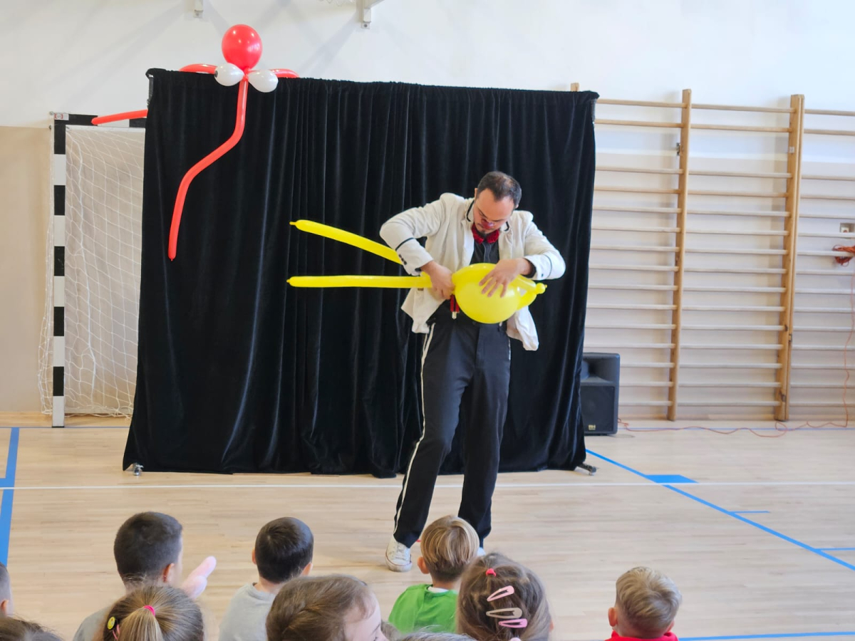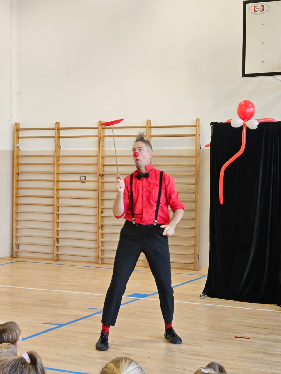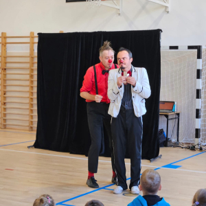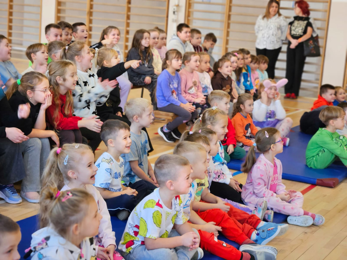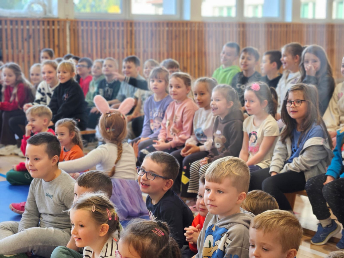 Dnia 5 listopada do naszego przedszkola zawitał „Teatr na Walizkach”, który zaprezentował wspaniały spektakl „Big smile”. Spotkanie odbyło się w ramach projektu Przedszkolne Inkubatory Świętokrzyskiej Dwujęzyczności, który realizujemy w naszej placówce. Widowisko to było pełne humoru, wesołych scenek, podczas którego dzieci utrwalały proste słowa i zwroty w j. angielskim (hello, good morning, colors, animals, thank you, goodbye). Na scenie pojawiła się żonglerka, klaunada, pantomima, taniec i język angielski, a przede wszystkim uśmiech na twarzy każdego przedszkolaka. Artyści w zabawny sposób angażowali publiczność, zachęcając dzieci do wspólnego śpiewania i powtarzania słówek.