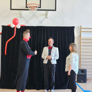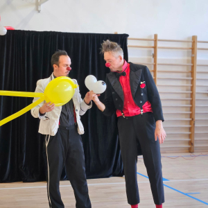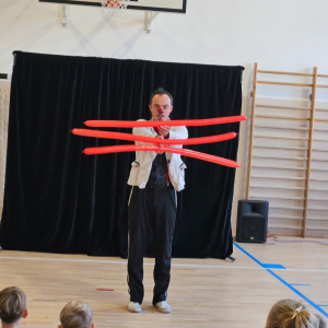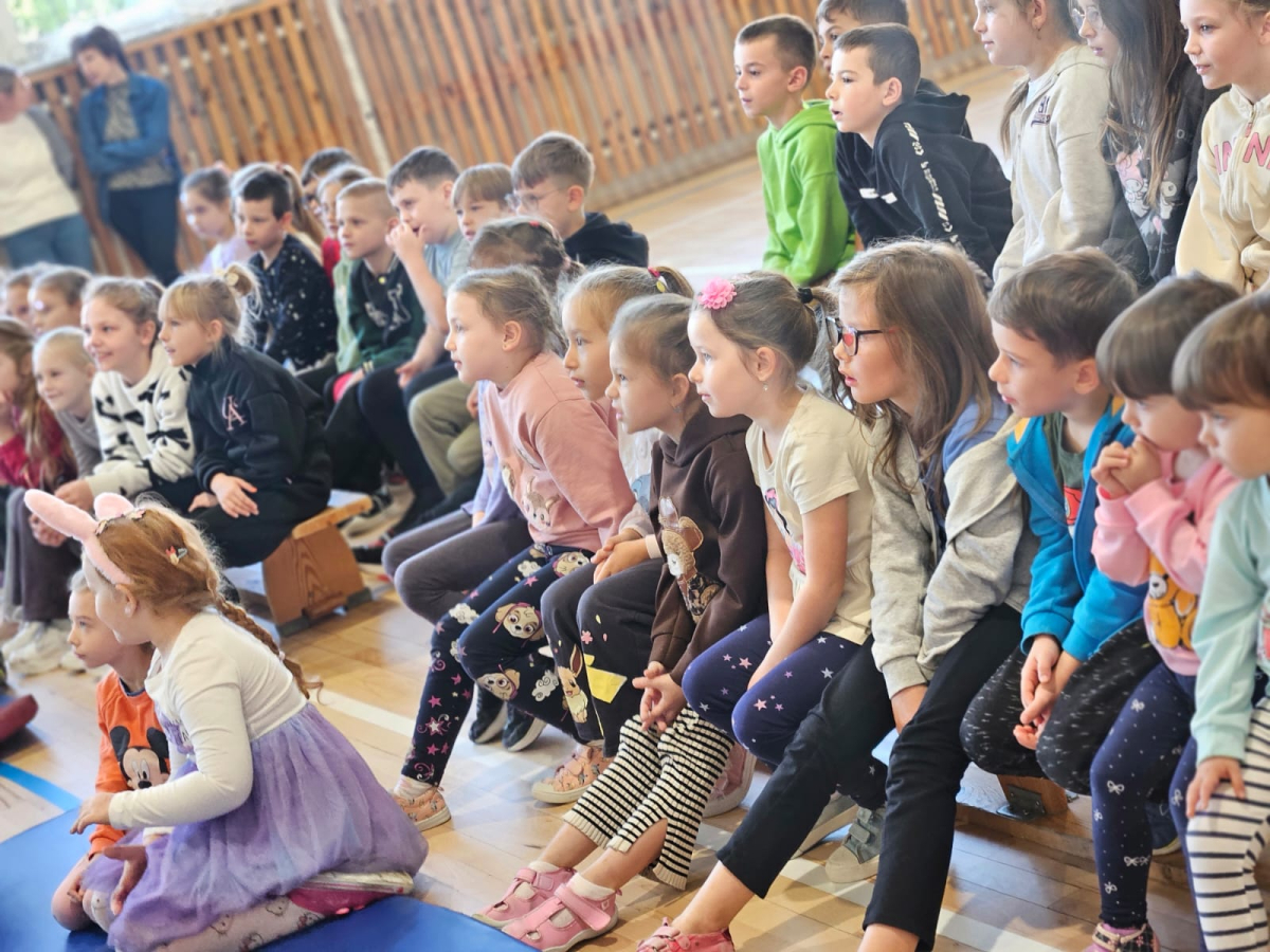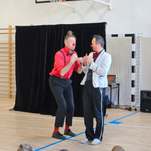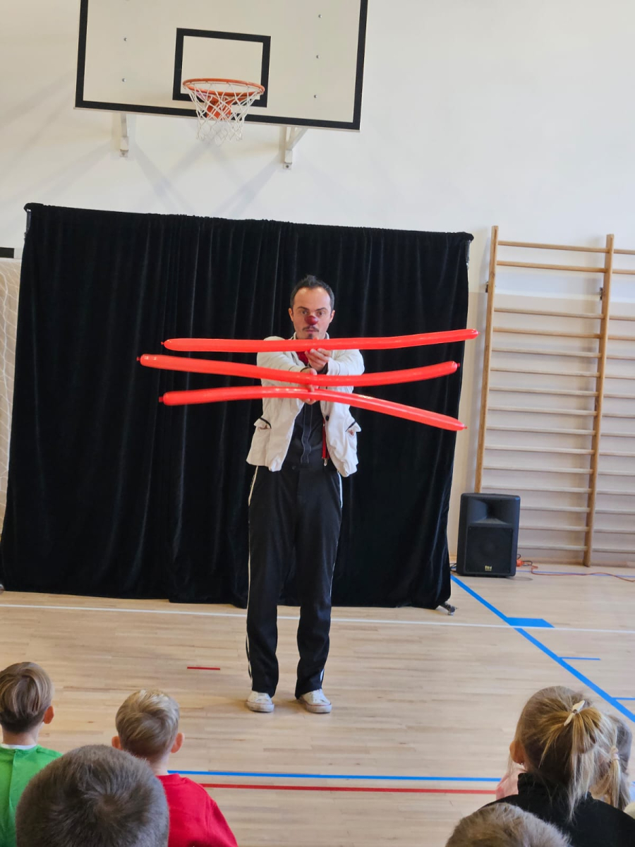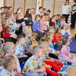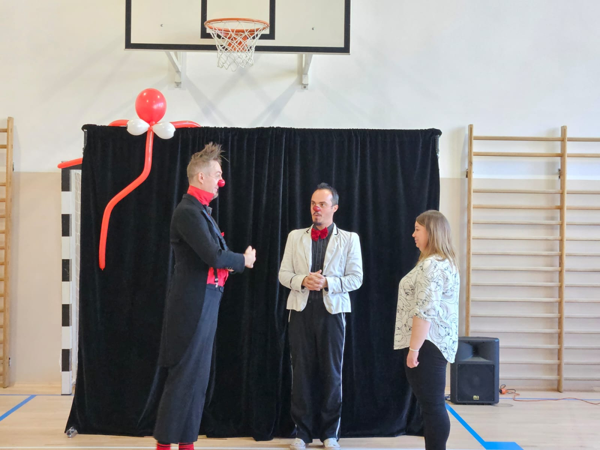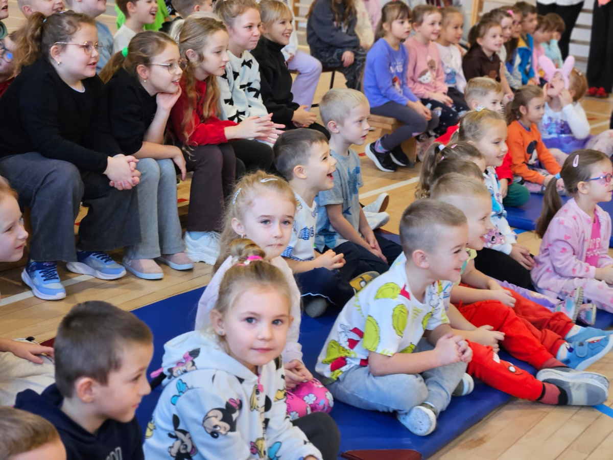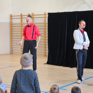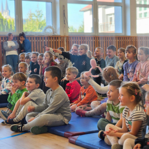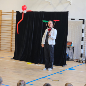 Dnia 5 listopada do naszego przedszkola zawitał „Teatr na Walizkach”, który zaprezentował wspaniały spektakl „Big smile”. Spotkanie odbyło się w ramach projektu Przedszkolne Inkubatory Świętokrzyskiej Dwujęzyczności, który realizujemy w naszej placówce. Widowisko to było pełne humoru, wesołych scenek, podczas którego dzieci utrwalały proste słowa i zwroty w j. angielskim (hello, good morning, colors, animals, thank you, goodbye). Na scenie pojawiła się żonglerka, klaunada, pantomima, taniec i język angielski, a przede wszystkim uśmiech na twarzy każdego przedszkolaka. Artyści w zabawny sposób angażowali publiczność, zachęcając dzieci do wspólnego śpiewania i powtarzania słówek.