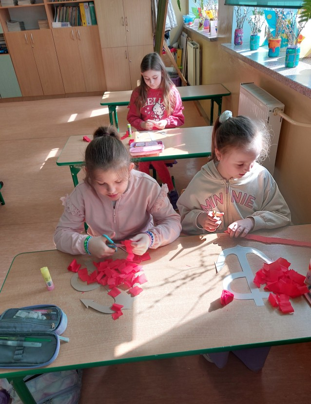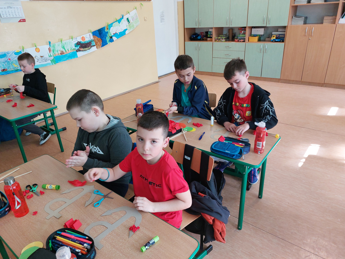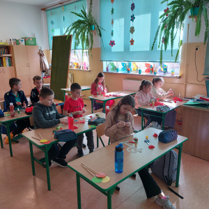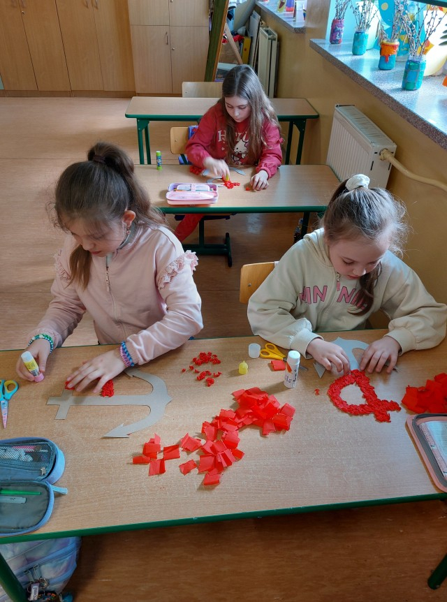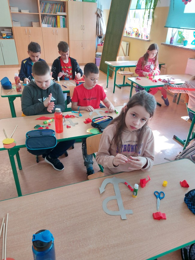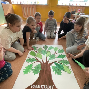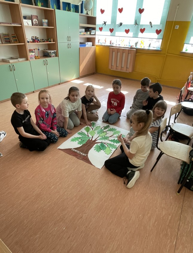Najmłodsi uczniowie uczyli się hymnu szkoły, aby z dumą zaprezentować go wspólnie ze starszymi kolegami i koleżankami podczas uroczystości. Powstały także indywidualne prace plastyczne pt. „Bohaterowie z dawnych lat” , wspólnie wykonane drzewa pamięci oraz klasowe plakaty patriotyczne pod hasłem „Jesteśmy dumni z patrona naszej szkoły!”.