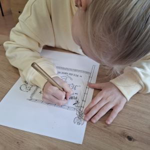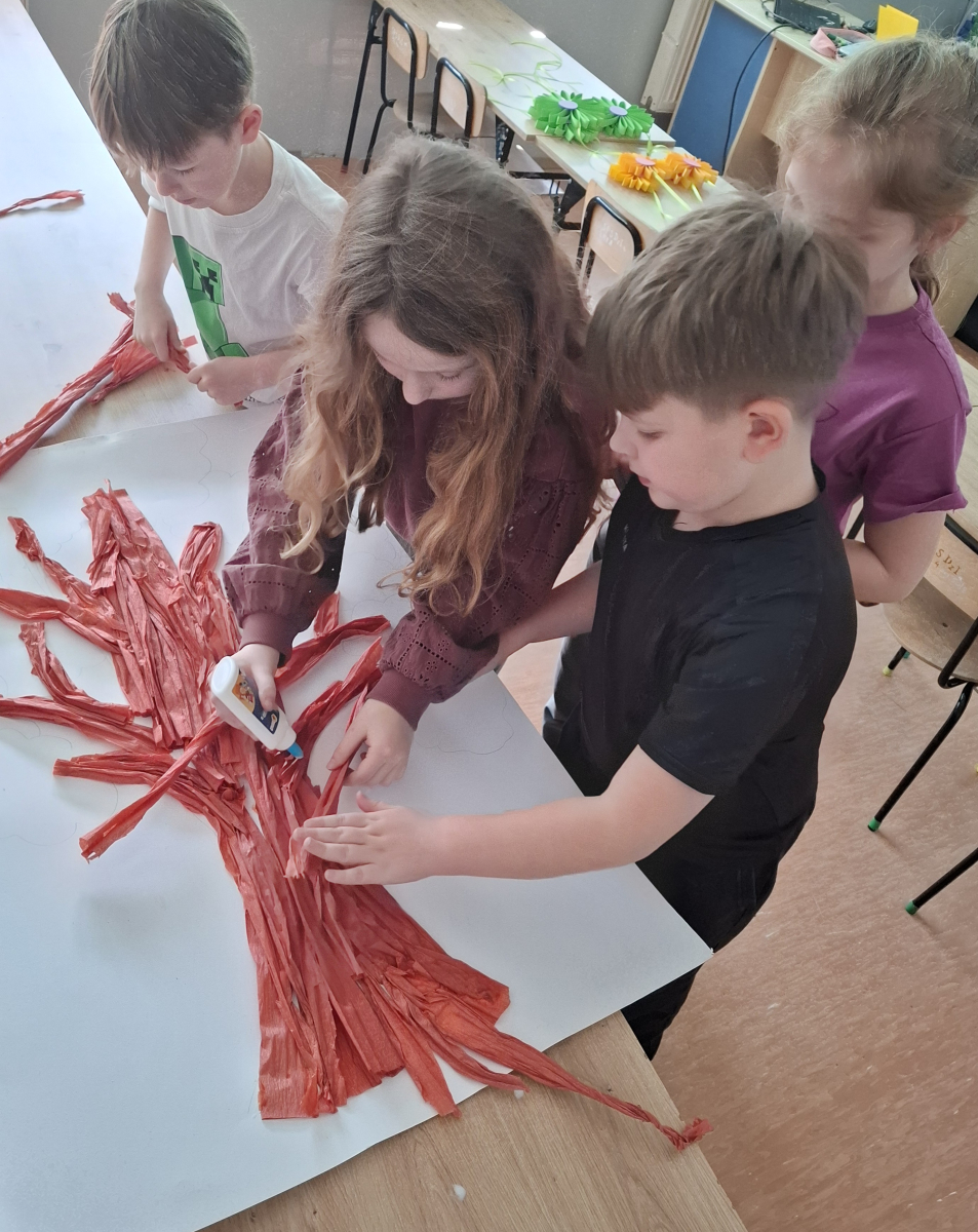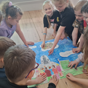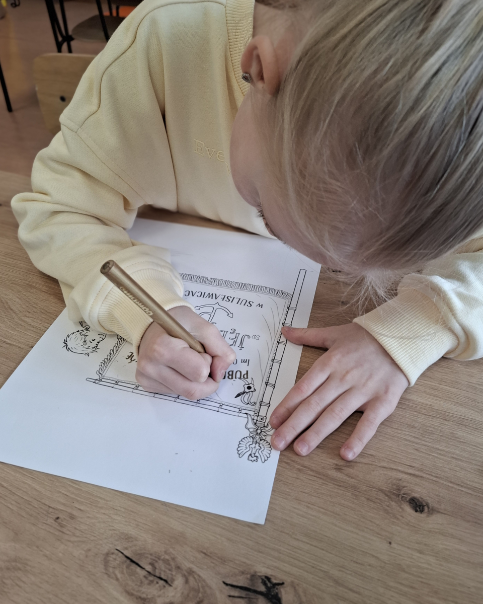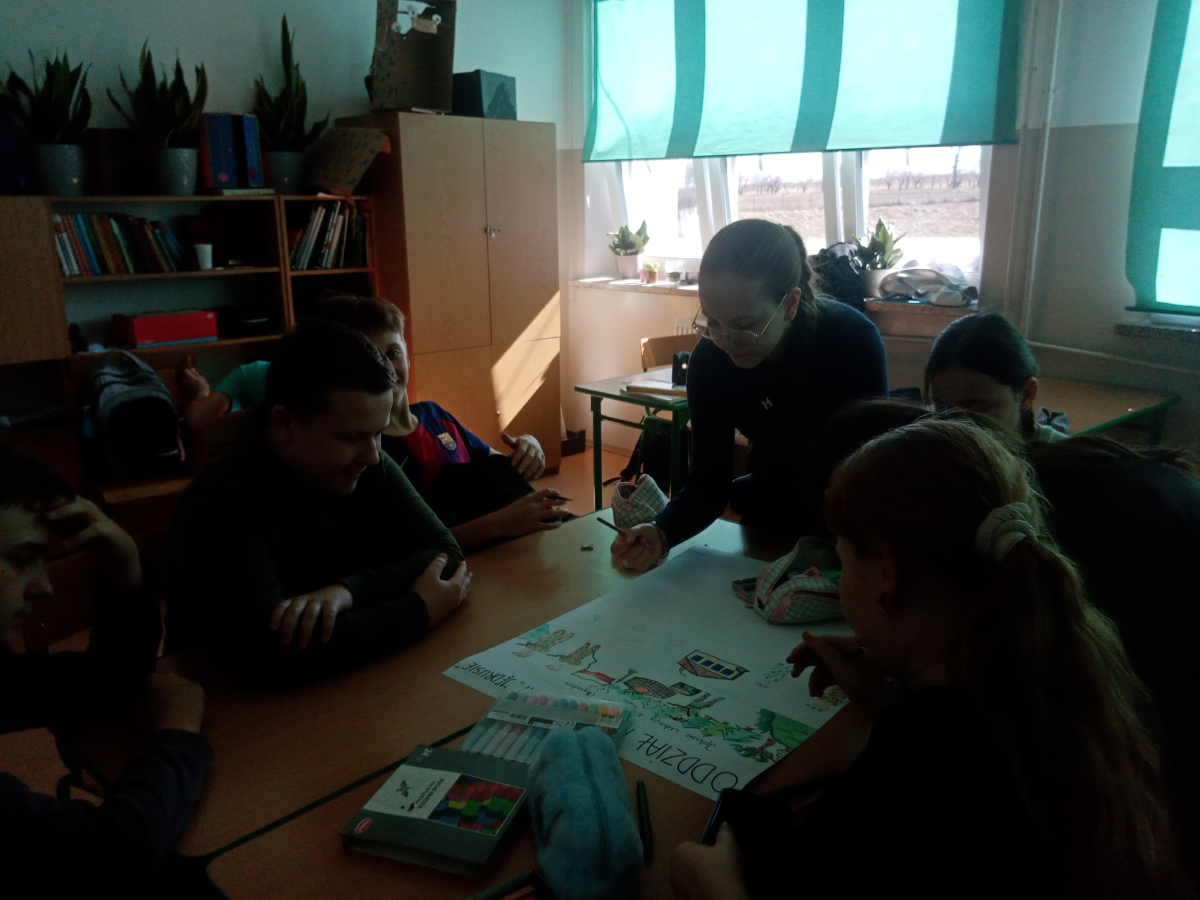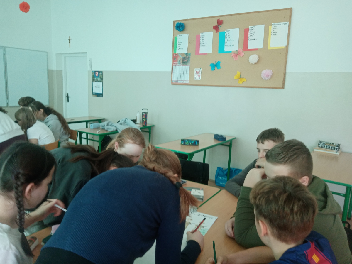 Klasa V zrealizowała zadanie pod hasłem „Jędrusie – historia zapisana na mapie”. Uczniowie, rysując mapę, poznawali miejsca związane z działalnością Jędrusiów, śledząc ich losy i najważniejsze wydarzenia. Dzięki temu mogli lepiej zrozumieć kontekst historyczny oraz znaczenie działań podejmowanych przez bohaterów, a także odkryć, jak historia łączy się z konkretnymi miejscami.