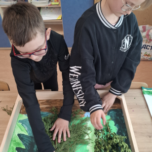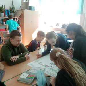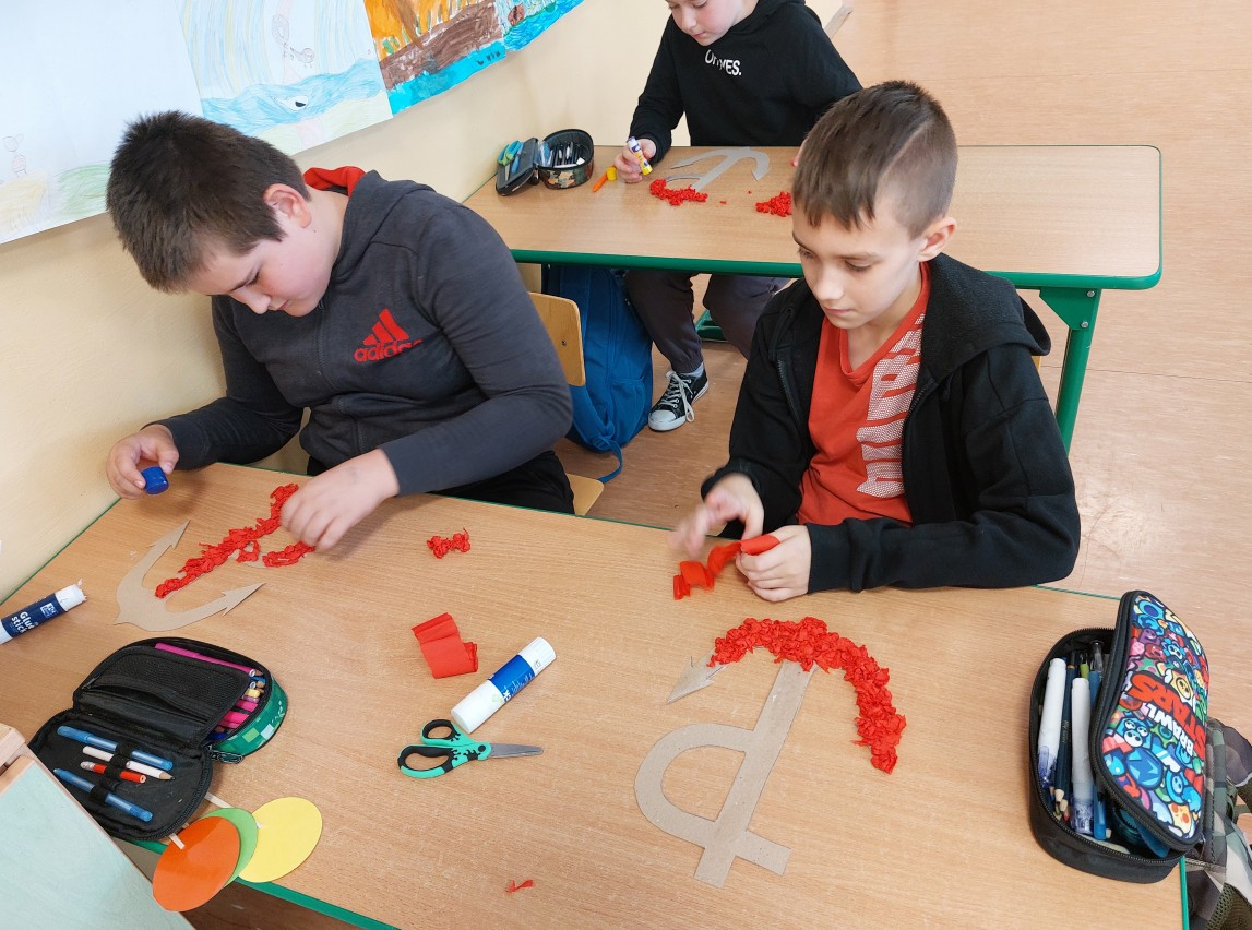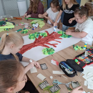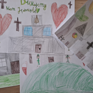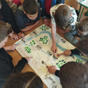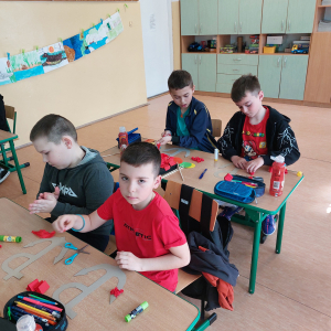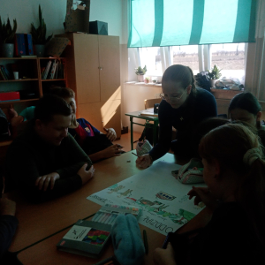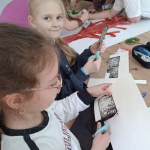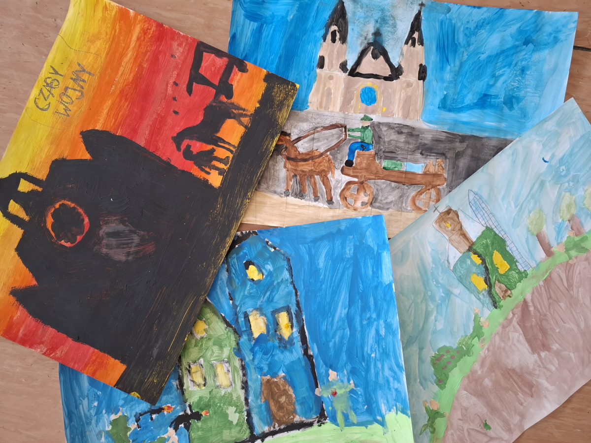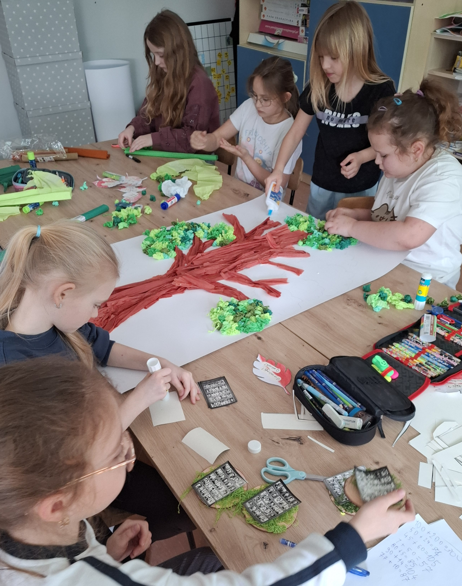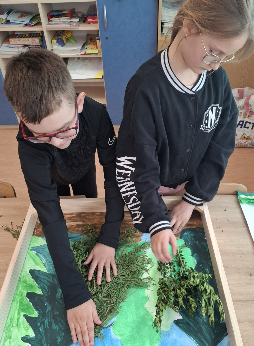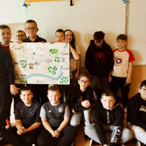 Klasa V zrealizowała zadanie pod hasłem „Jędrusie – historia zapisana na mapie”. Uczniowie, rysując mapę, poznawali miejsca związane z działalnością Jędrusiów, śledząc ich losy i najważniejsze wydarzenia. Dzięki temu mogli lepiej zrozumieć kontekst historyczny oraz znaczenie działań podejmowanych przez bohaterów, a także odkryć, jak historia łączy się z konkretnymi miejscami.