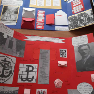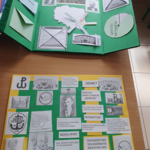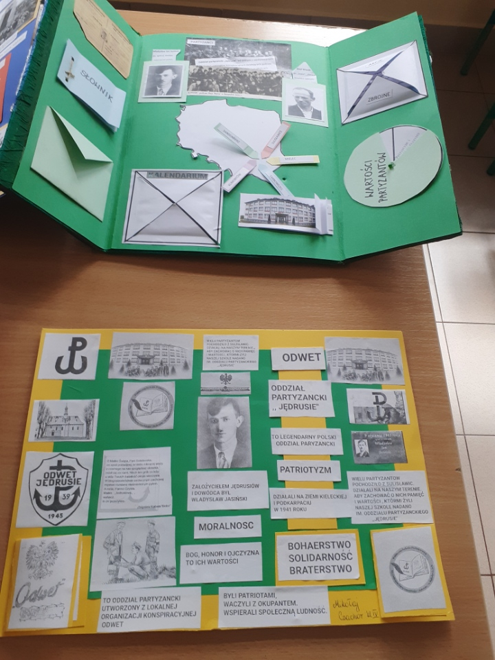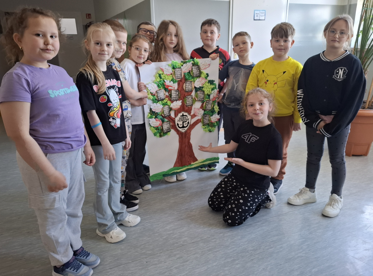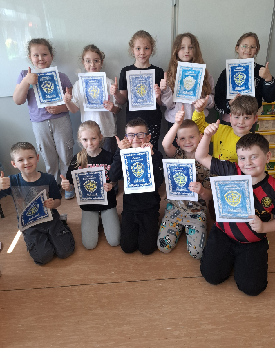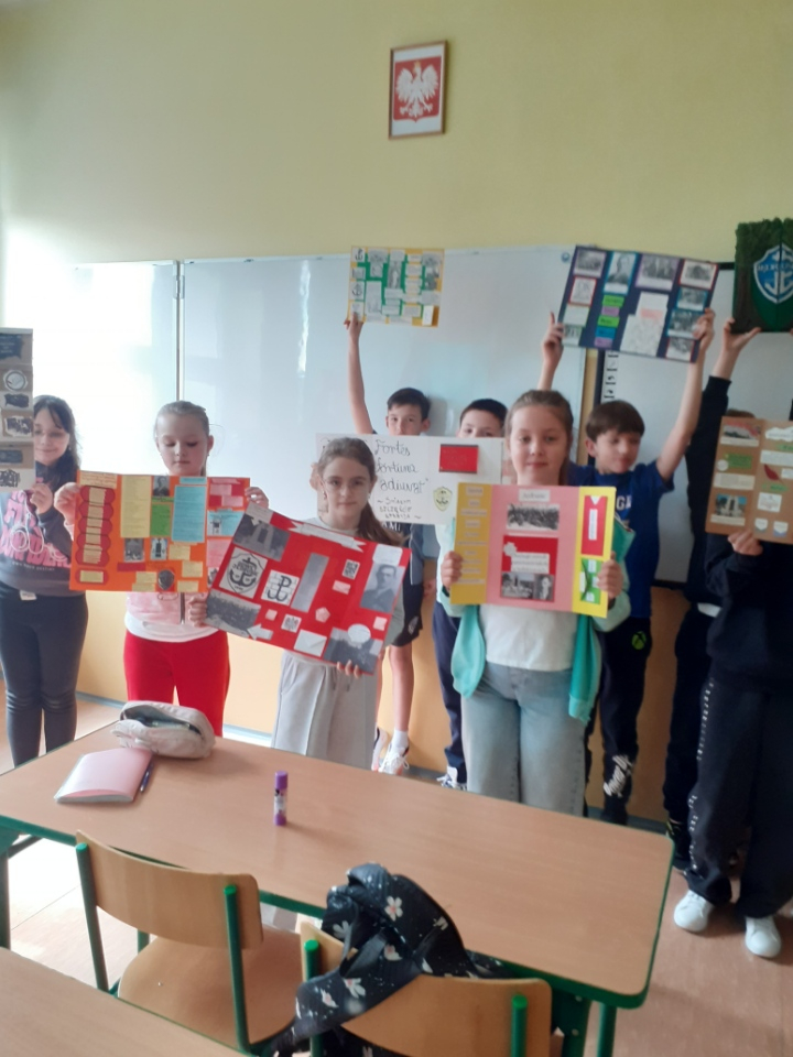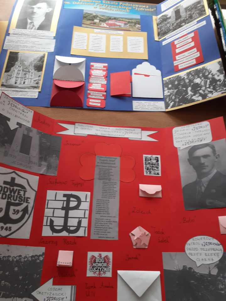 „Patron naszej szkoły – nasza duma” to hasło przewodnie klasy IV, która przygotowała lapbooki, poświęcone odpowiedzi na pytanie: kim byli Jędrusie?. Uczniowie, pracując w twórczy i zaangażowany sposób, zgłębiali historię patrona oraz działalność oddziału, porządkując zdobytą wiedzę w atrakcyjnej, graficznej formie. Powstałe prace nie tylko wzbogaciły wiedzę uczniów, ale także pozwoliły im lepiej zrozumieć wartości, które przyświecały bohaterom i które są ważne również dla naszej szkolnej społeczności.