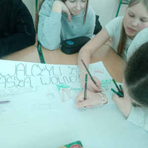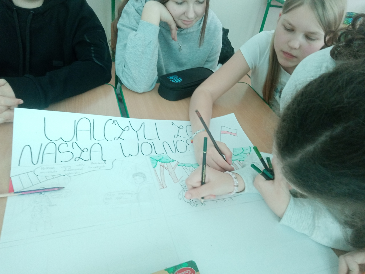 Uczniowie klasy VII wzięli udział w działaniach edukacyjnych pod hasłem: ,,Źródła, świadectwa, pamięć”, realizowanych metodą projektu podczas lekcji informatyki. Ich zadaniem było przygotowanie prezentacji multimedialnej na temat historii Oddziału Partyzanckiego „Jędrusie”.