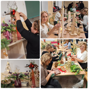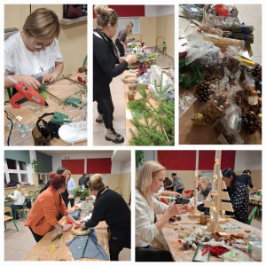 2 grudnia w naszej szkole odbyły się kreatywne warsztaty, w których udział wzięli rodzice i nauczyciele. Uczestnicy tworzyli piękne stroiki i ozdoby świąteczne, wykorzystując naturalne materiały, światełka oraz tradycyjne elementy dekoracyjne.
