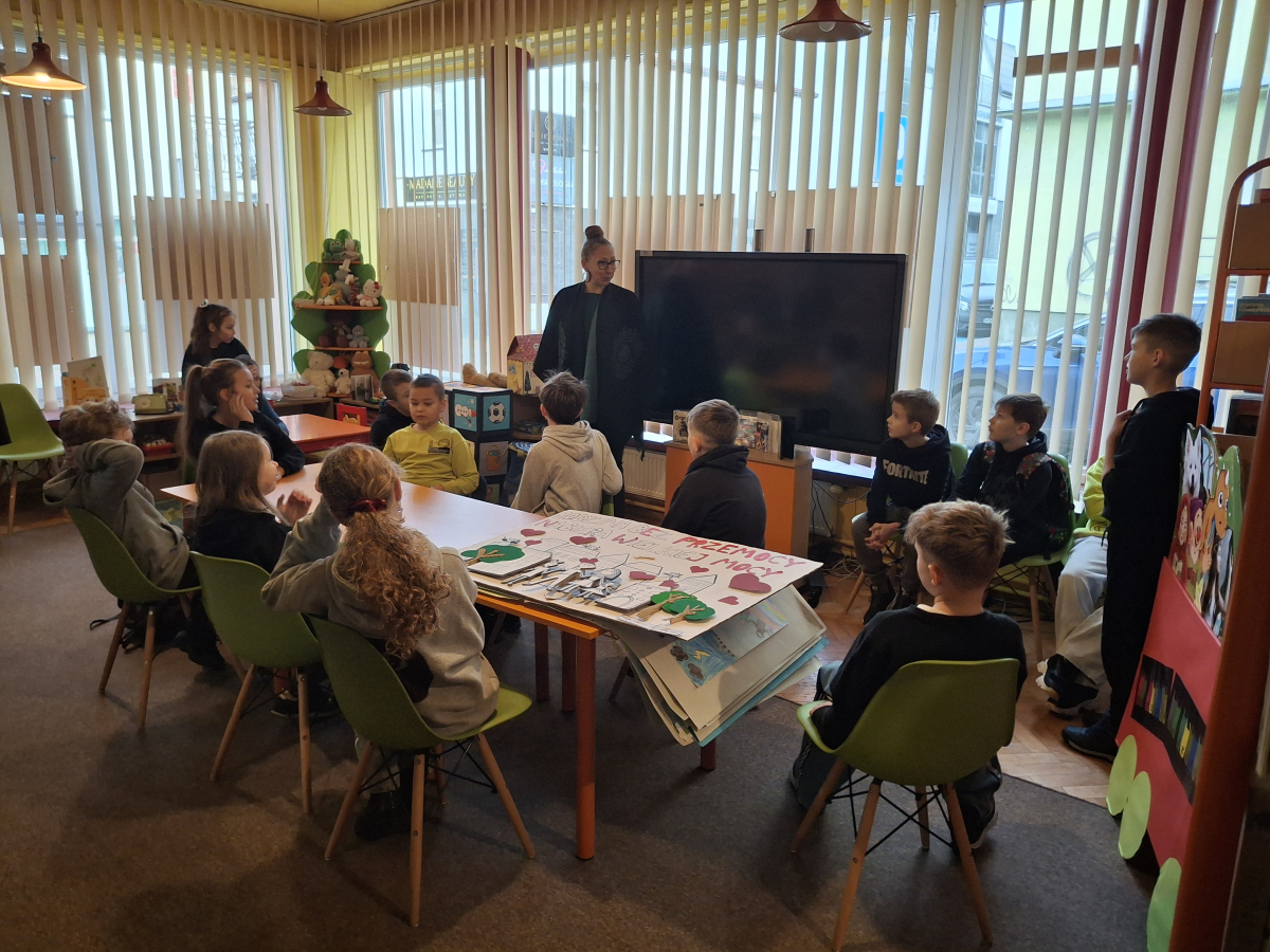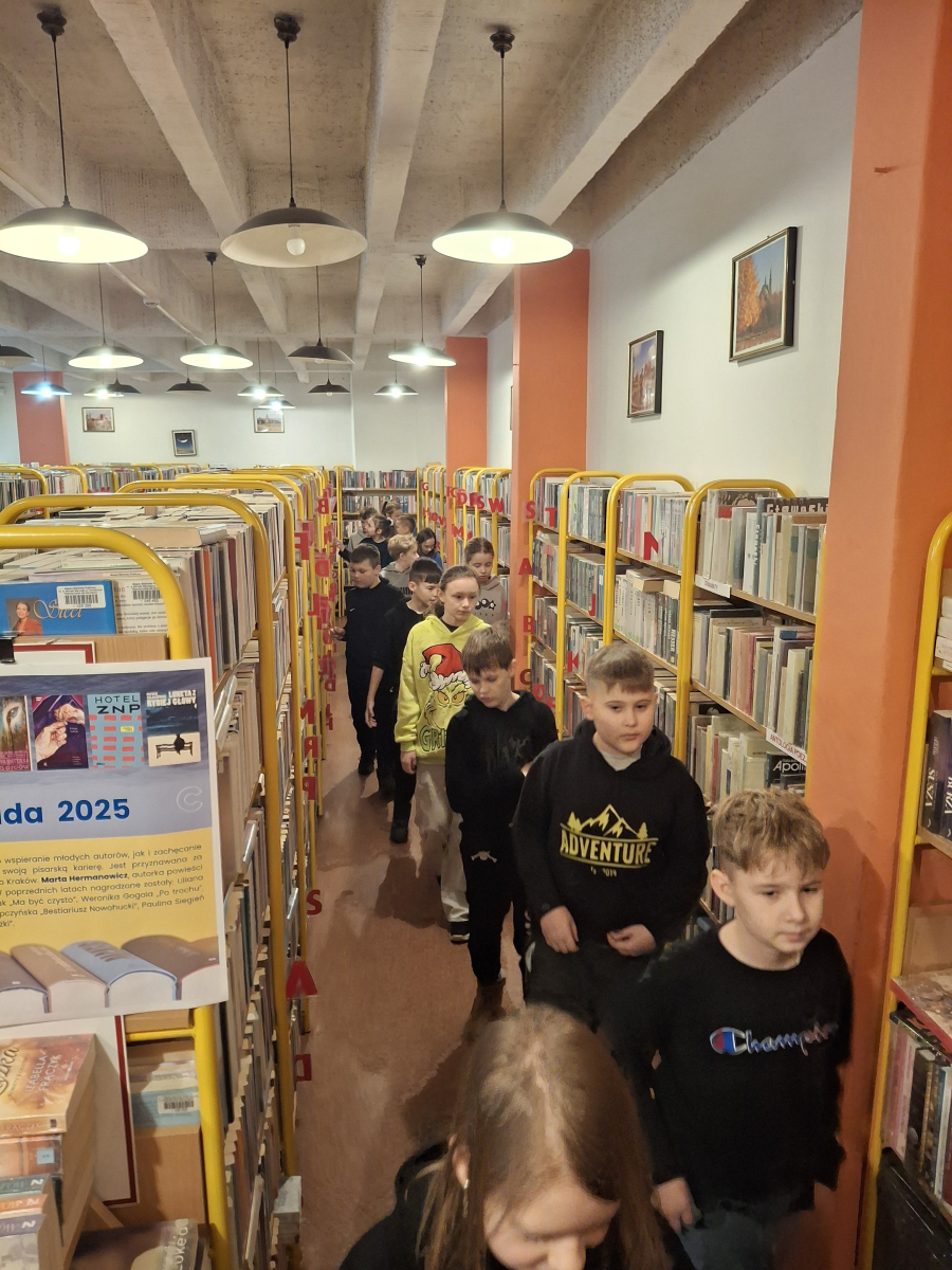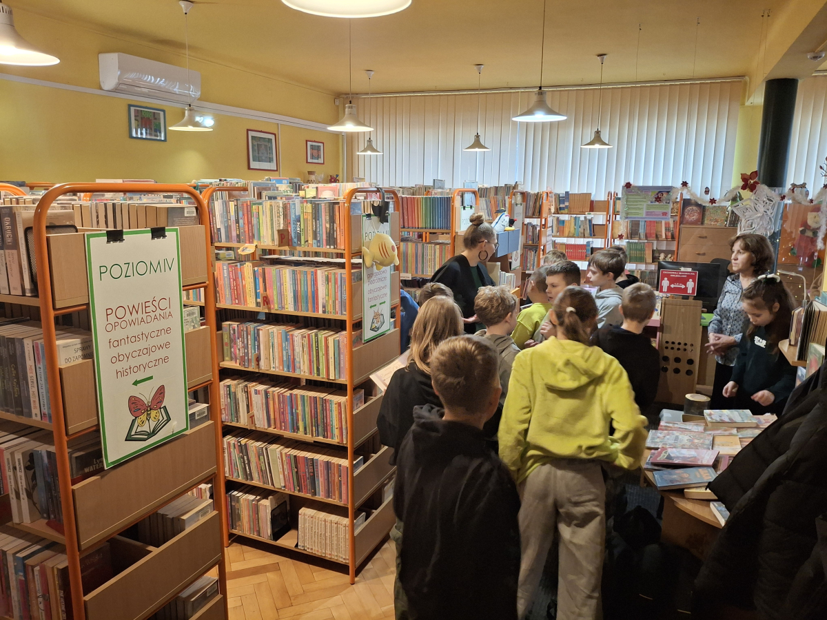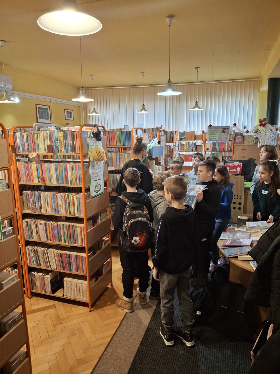 17 grudnia 2025 r. uczniowie klasy czwartej odwiedzili Miejską Bibliotekę Publiczną im. dr. Michała Marczaka w Tarnobrzegu. Celem wycieczki było rozwijanie zainteresowań czytelniczych, poznanie zasad funkcjonowania biblioteki, utrwalanie zasad kulturalnego zachowania.