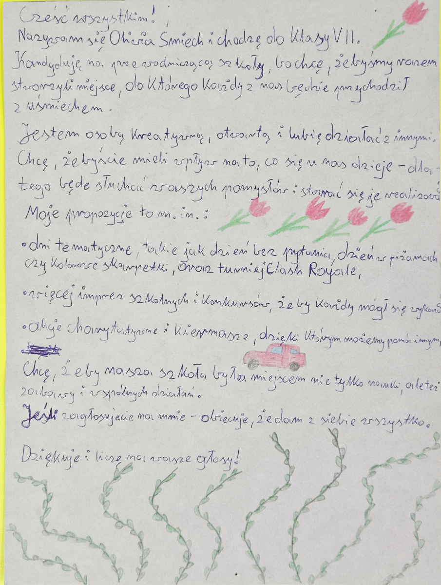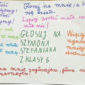 Gratulujemy wybranym i życzymy wielu udanych inicjatyw oraz owocnej współpracy z całą Społecznością Szkolną. Dziękujemy, także wszystkim kandydatom za odwagę, kreatywność i chęć działania. Wasze pomysły są inspiracją dla całej szkoły.